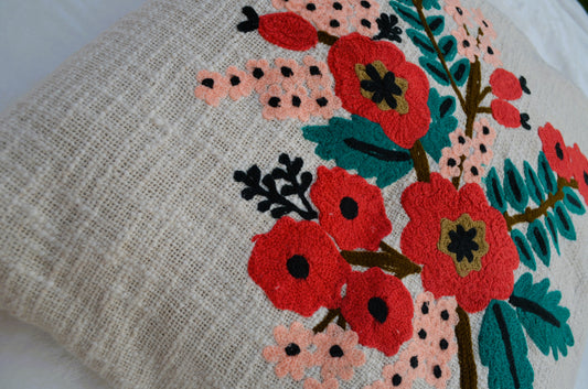 Sunset Leaf Embroidered Tufted beige cushion cover