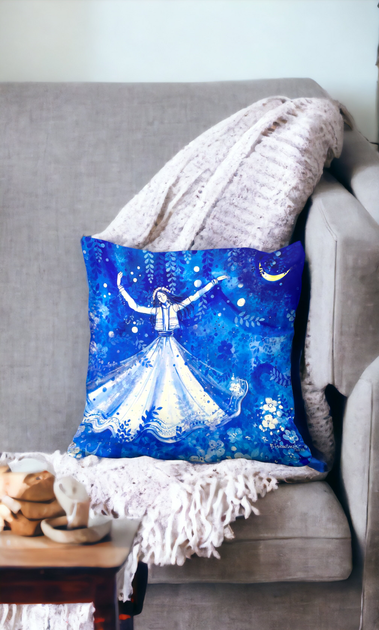 Introducing our latest offering, a limited edition product that is sure to delight - the Sufiyana Series Cushion Cover, an elegant addition to any home decor. This is a result of a one-of-a-kind collaboration with Mona Biswarupa who is a Dubai-based Indian artist. Mona is known for her portrayal of women that pay homage to nature, folk, and the feminine.