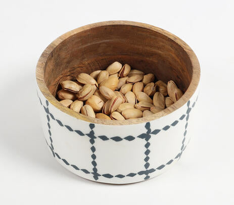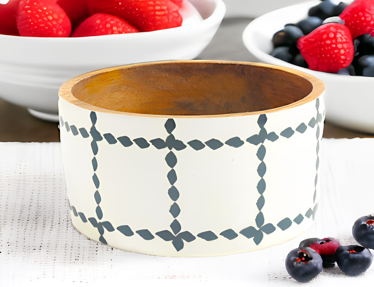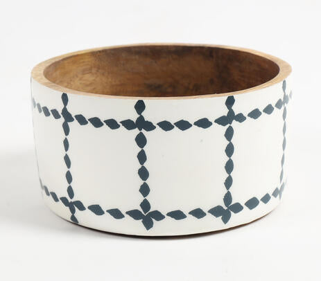 Enameled Mango Wood Geometric Wooden Serving Bowl