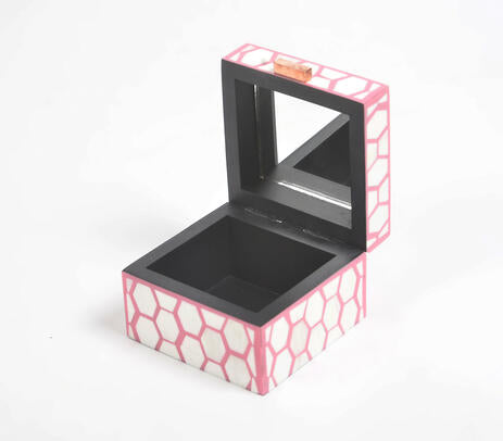 This eco-friendly, honeycomb pink MDF jewelry box made from MDF by artisans from North India. With a classic design pattern, this box is ideal to store small jewelry and trinkets.