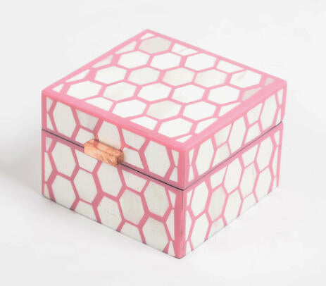 Honeycomb Pink MDF Jewelry Trinket Deco Box