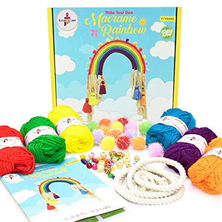 This DIY craft kit entails all you need to build yourself a stunning, magical Macrame Rainbow. It includes 5 Meters Cotton Cord, 7 Bright Colorful Woolen Balls, Beads to help you create your own marvelous Wall Hanging Decor.