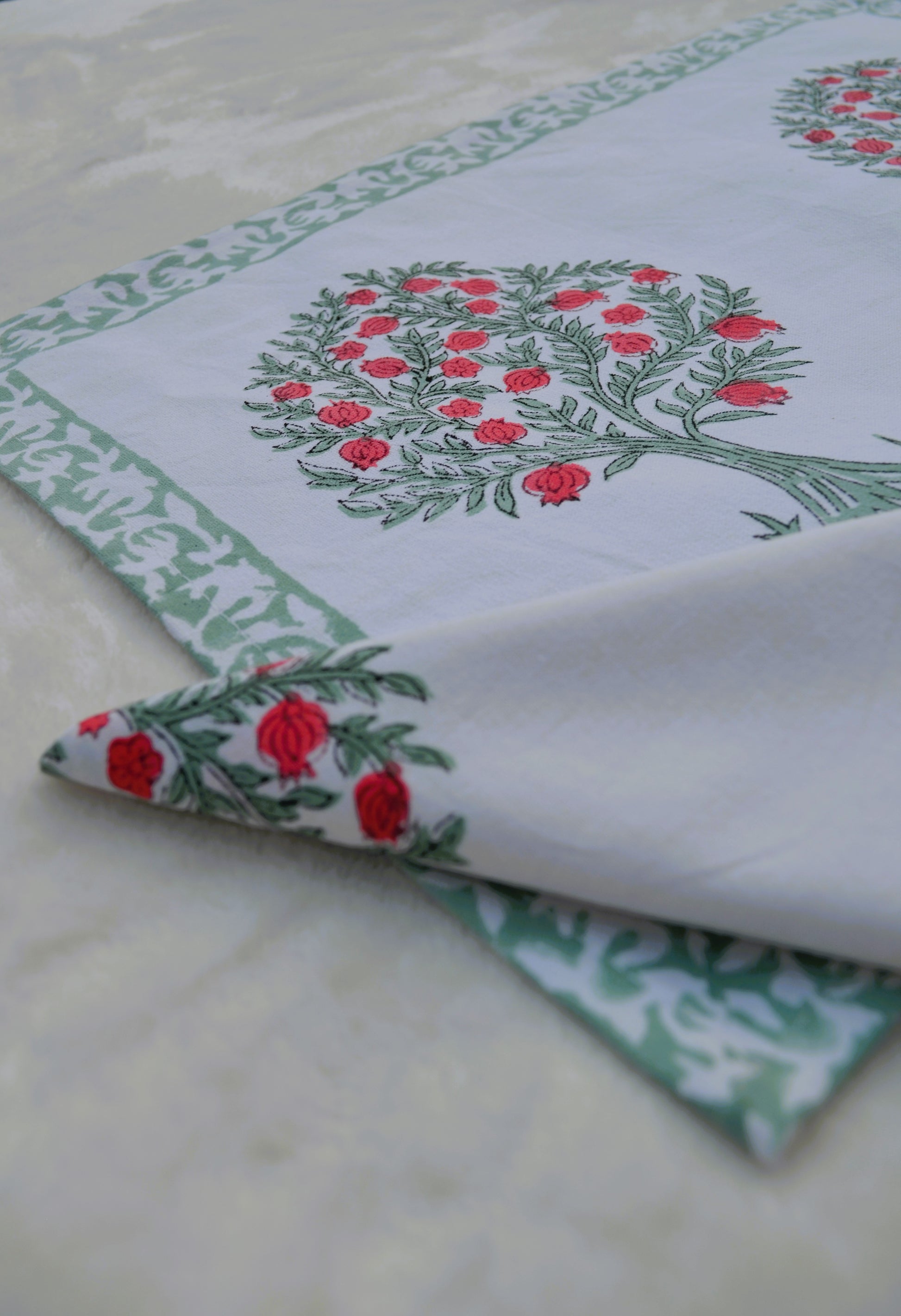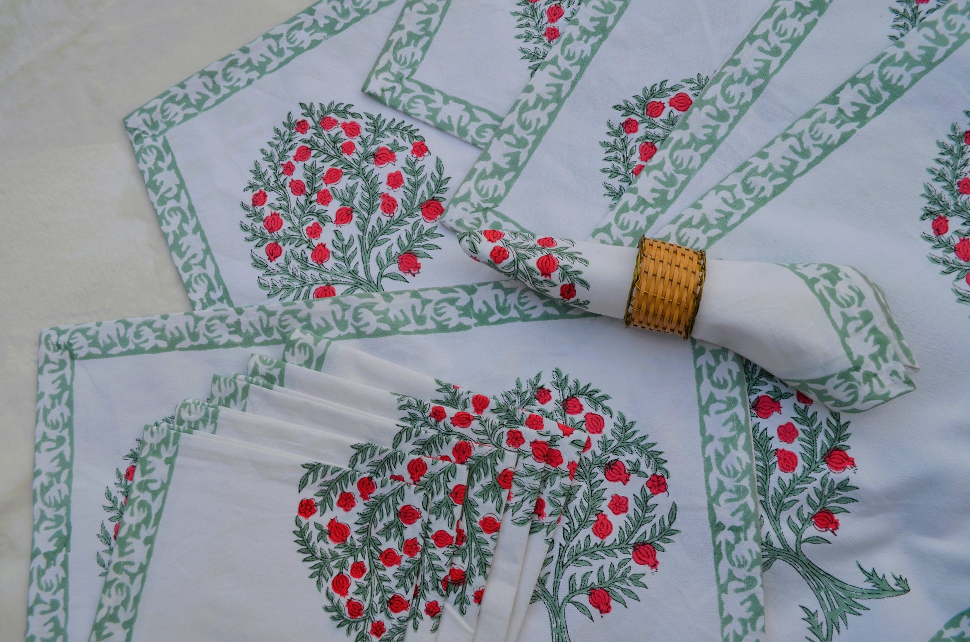 Pomegranate tree hand block printed table mats with cloth napkins (set of 6)