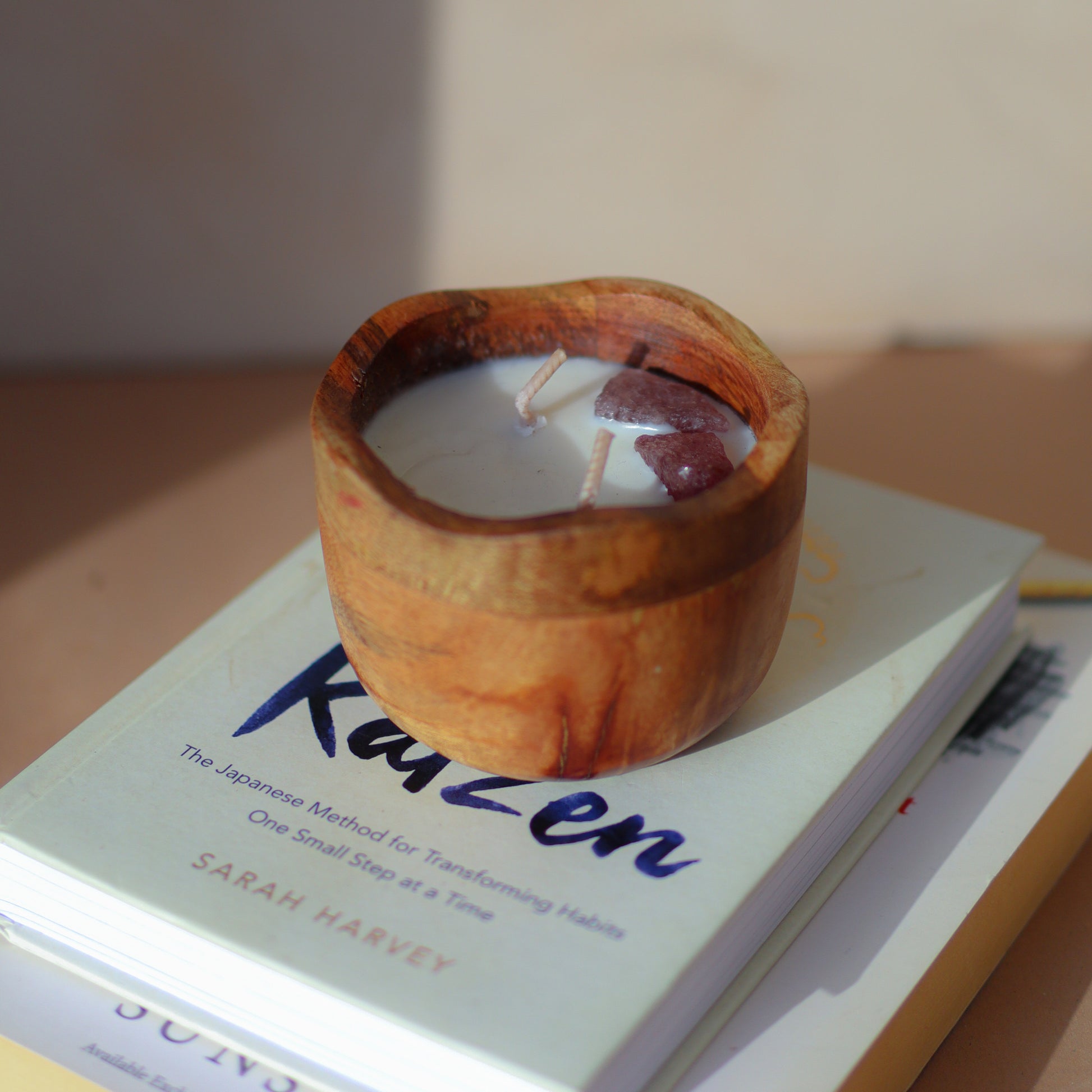Illuminate your space with our "Wooden Candle Jar with Gemstones", a perfect blend of craftsmanship and luxury.
